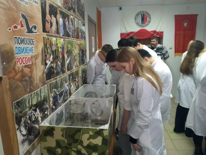 Юные гости с большим интересом осмотрели экспонаты, найденные поисковиками на полях сражений Великой Отечественной войны. Григорий Александрович рассказал о каждой уникальной находке, переданной в музей поискового отряда.